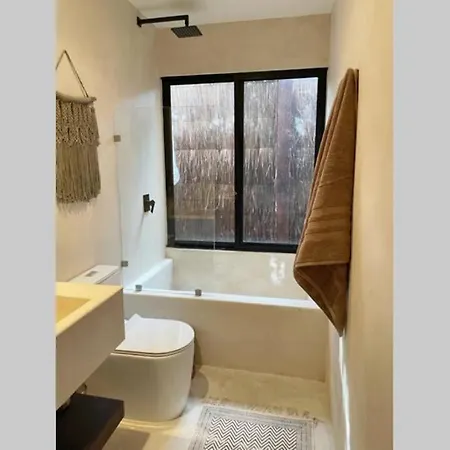 The accommodation features views of the garden and includes a sitting area, a living room, and a fully equipped kitchen with air conditioning and a washing machine. At Tulum Apartment Boho Vibes, a separate toilet and a shower are provided to improve your comfort. Moreover, there are hairdryers, toiletries, and towels as well.